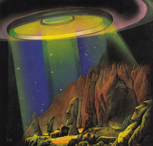 Denk aan de boeken van Erich von Däniken.